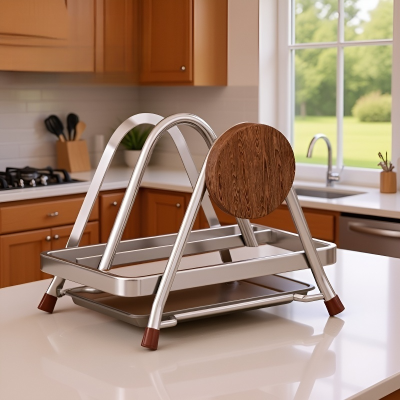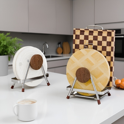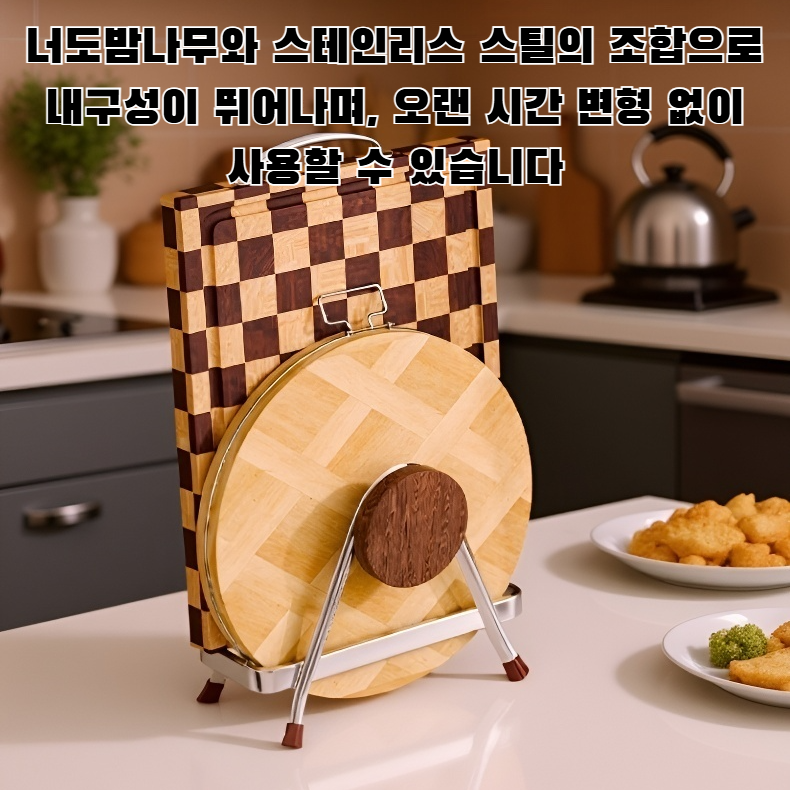 빈티지 스타일 너도밤나무 스테인리스 스틸 커팅보드 랙